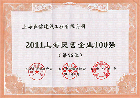 2015年9月榮獲“2015年度上海民營企業(yè)100強(qiáng)”