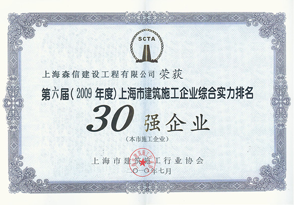 2015年8月榮獲“2014年度上海市建筑施工企業(yè)綜合實力排名30強(qiáng)企業(yè)”